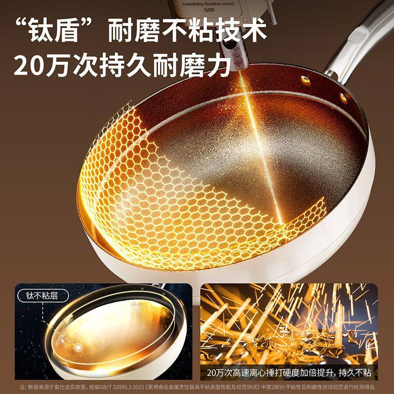 爱仕达不粘锅有钛锅陶瓷炒锅家用轻量炒菜锅平底锅燃气电磁炉专用