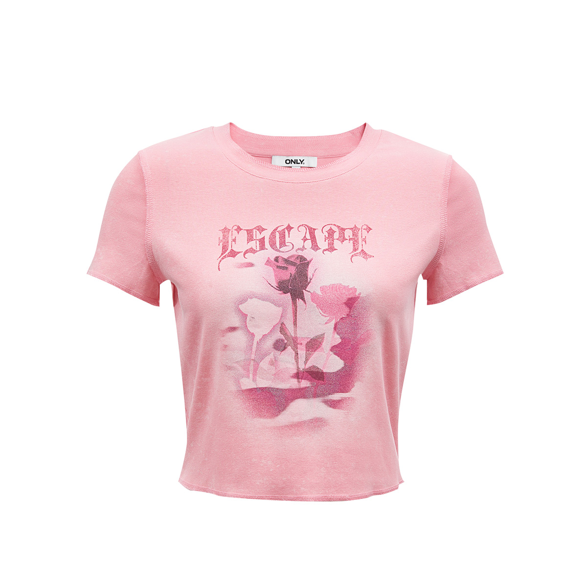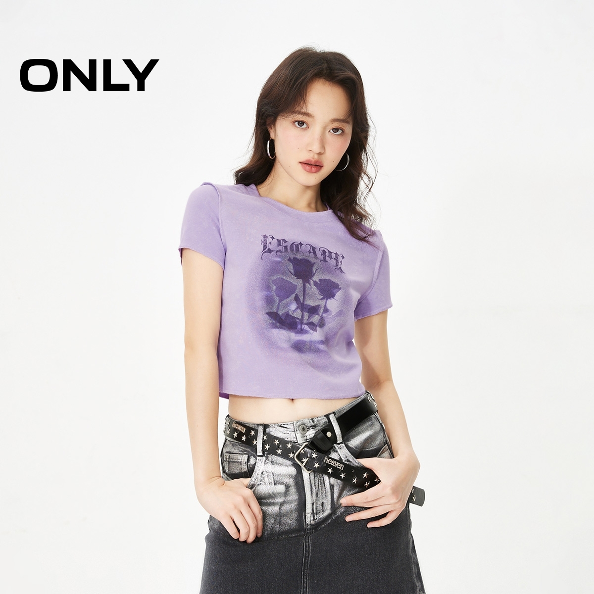 o区【新】绫致ONLY25春夏时尚做旧水洗细闪印花正肩短款T恤女潮
