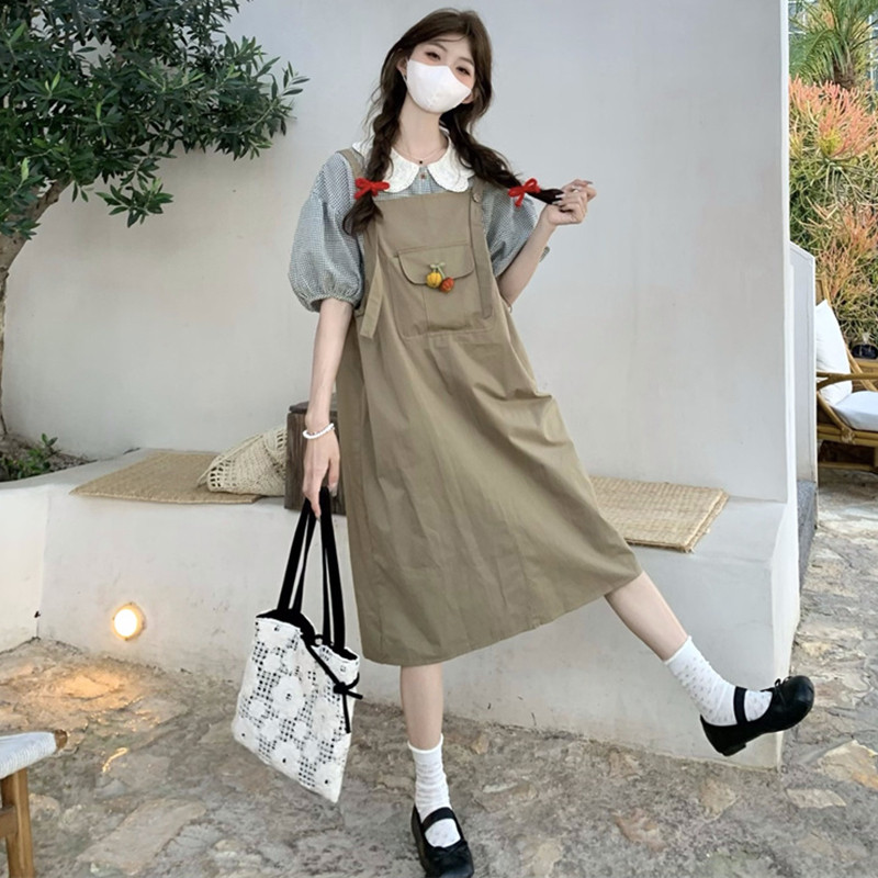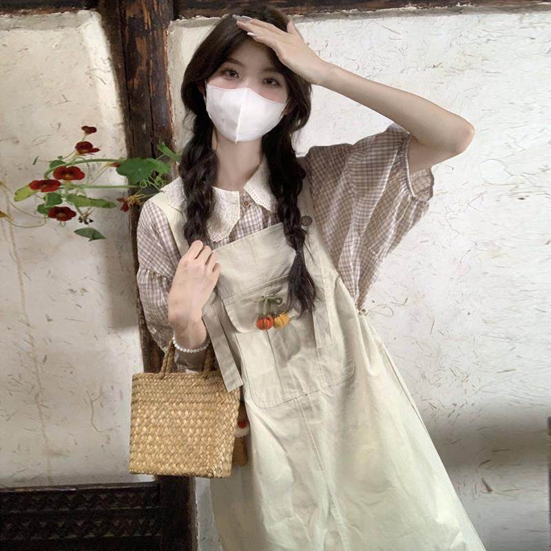 娃娃领衬衫背带裙子套装少女夏装2025新款初中高中学生减龄连衣裙