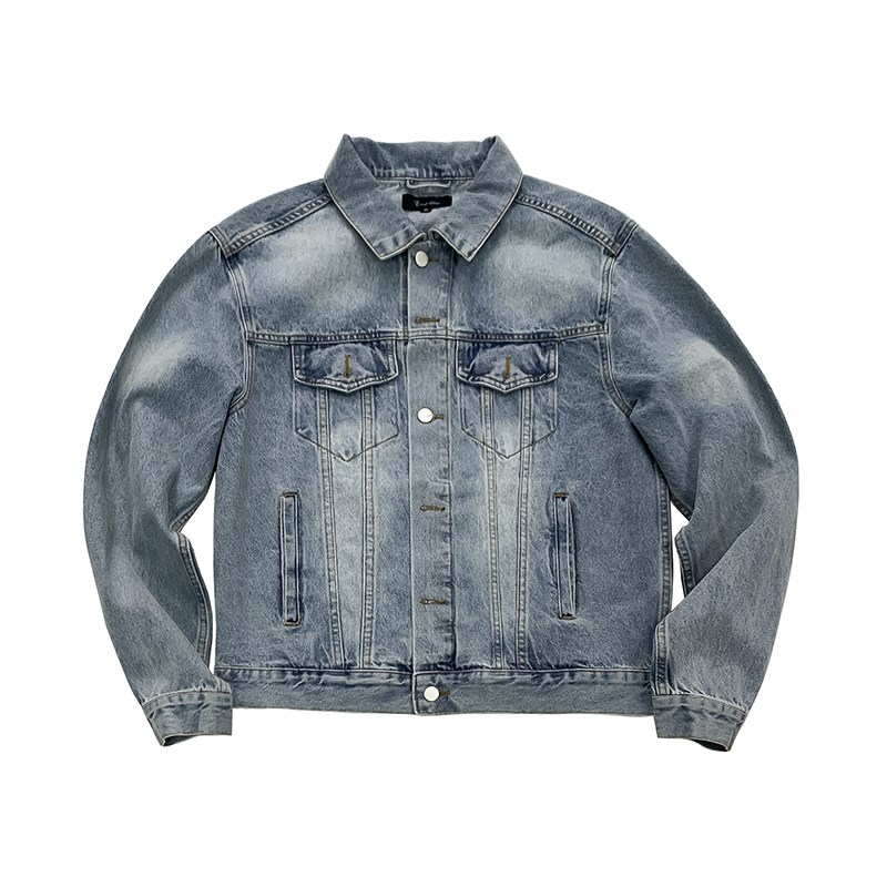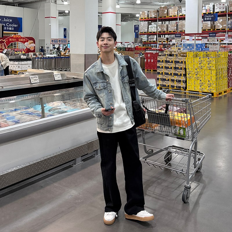蓝色纽扣牛仔夹克春秋季男生2025新款翻领宽松休闲上衣外套口袋
