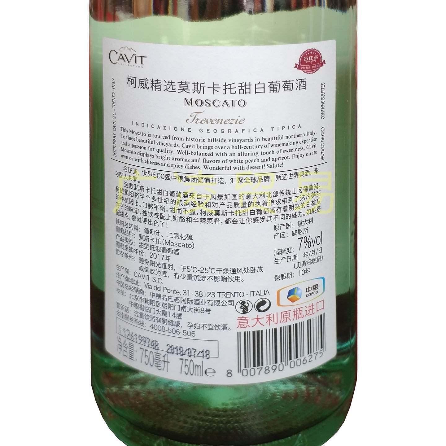 意大利原瓶进口柯威精选系列莫斯卡托甜型低泡白葡萄酒赤霞珠桃红