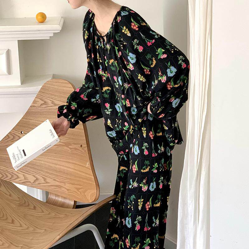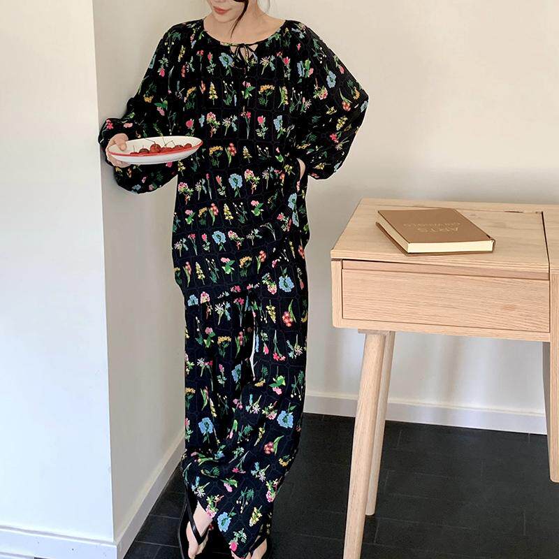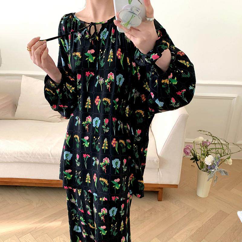 法式气质长袖棉绸睡衣套装