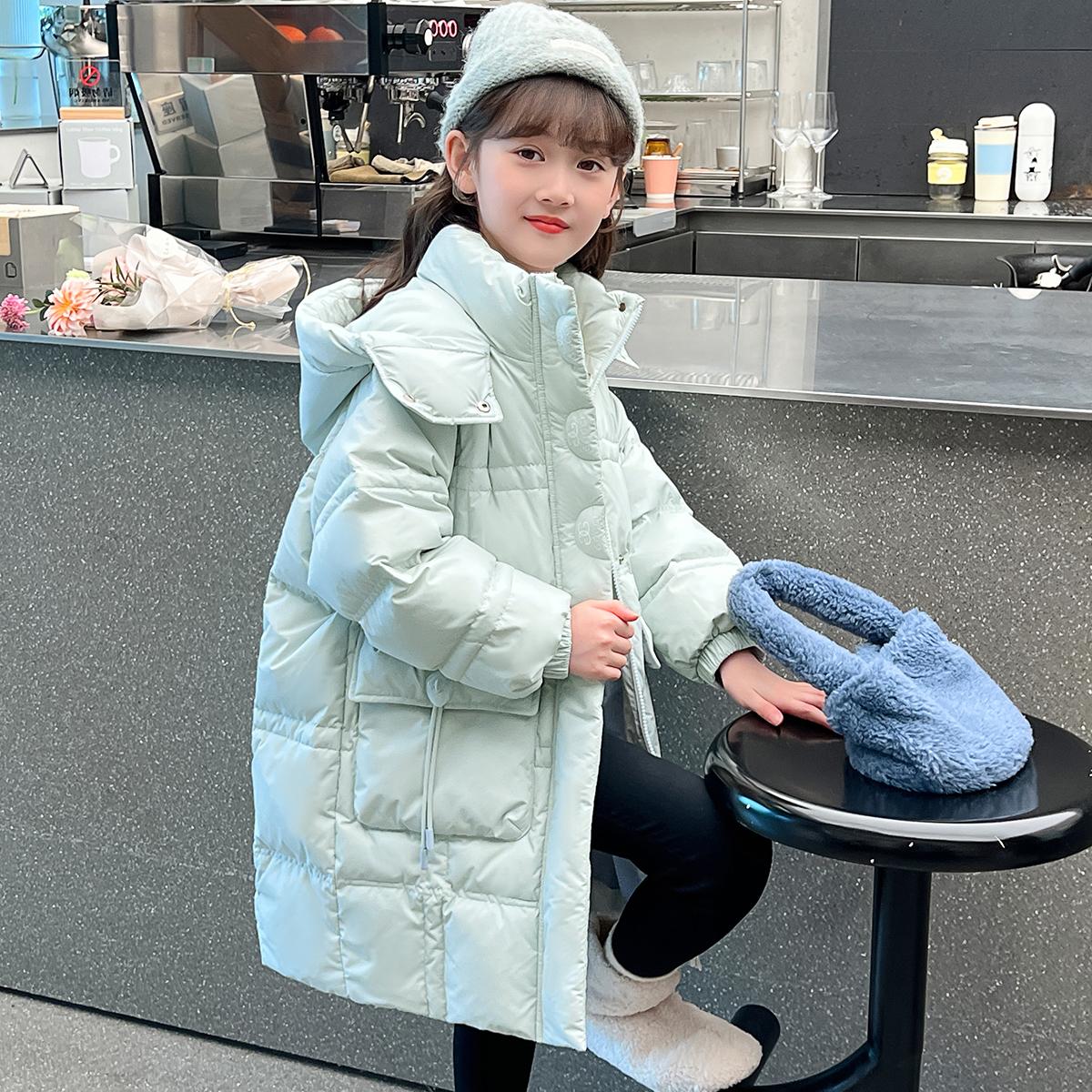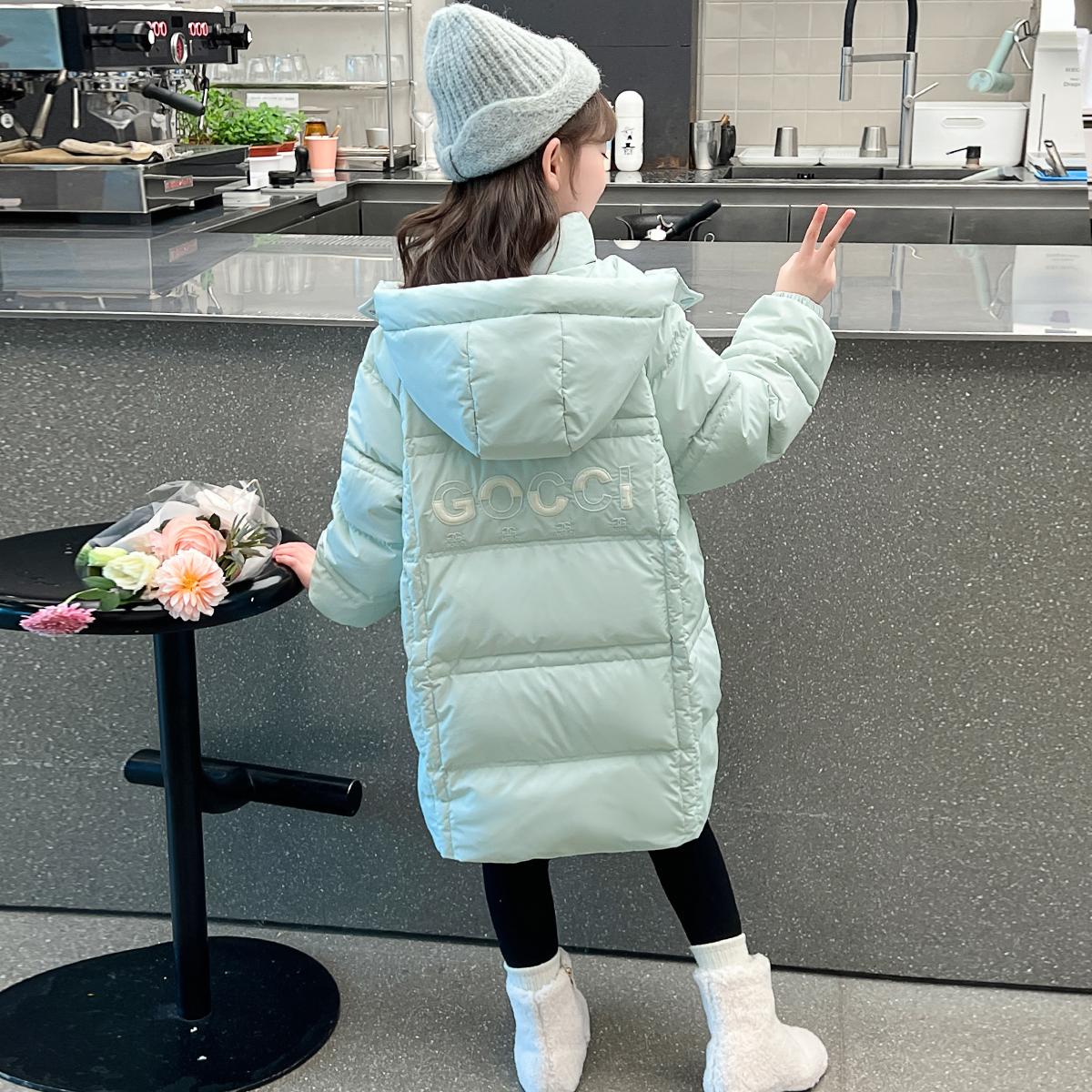 女童新款棉衣韩版连帽中长款时髦羽绒棉袄外套冬装大童保暖棉服潮