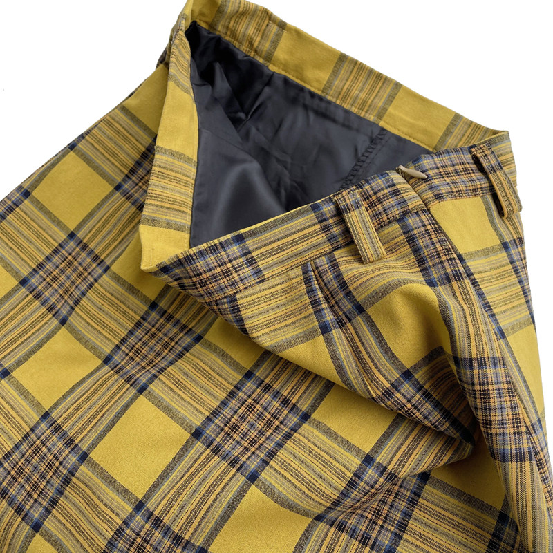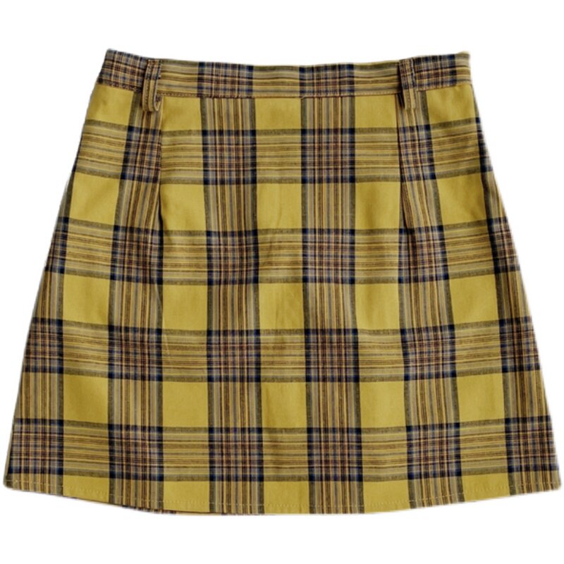 黄色格子半身裙女韩版高腰显瘦包臀防走光a字小短裙可系皮带春季