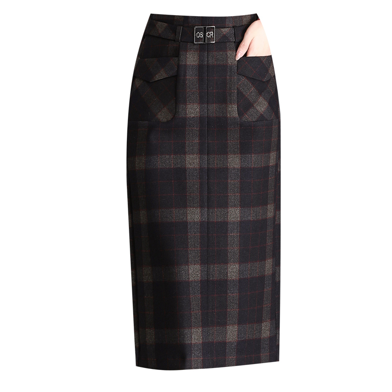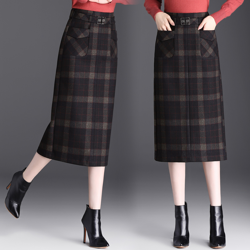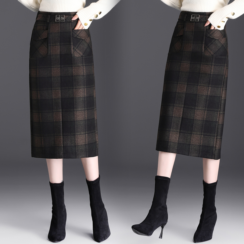 毛呢格子包臀裙半身裙女秋冬2025新款高腰显瘦中长款直筒一步裙子