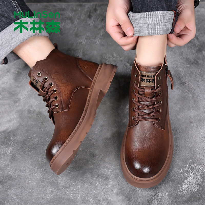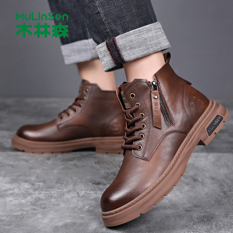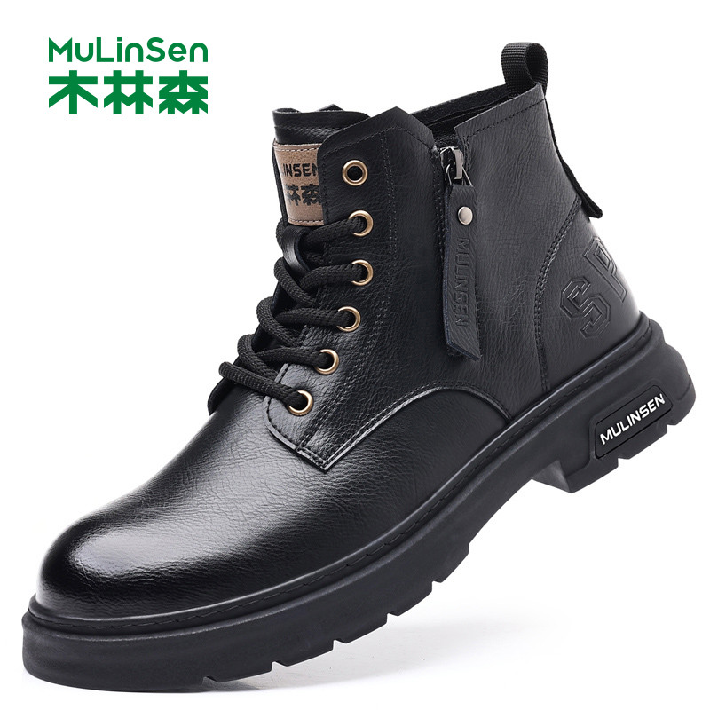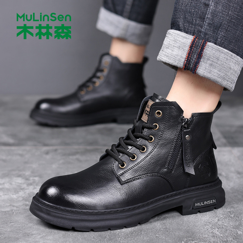 木林森新款真皮高帮男马丁靴