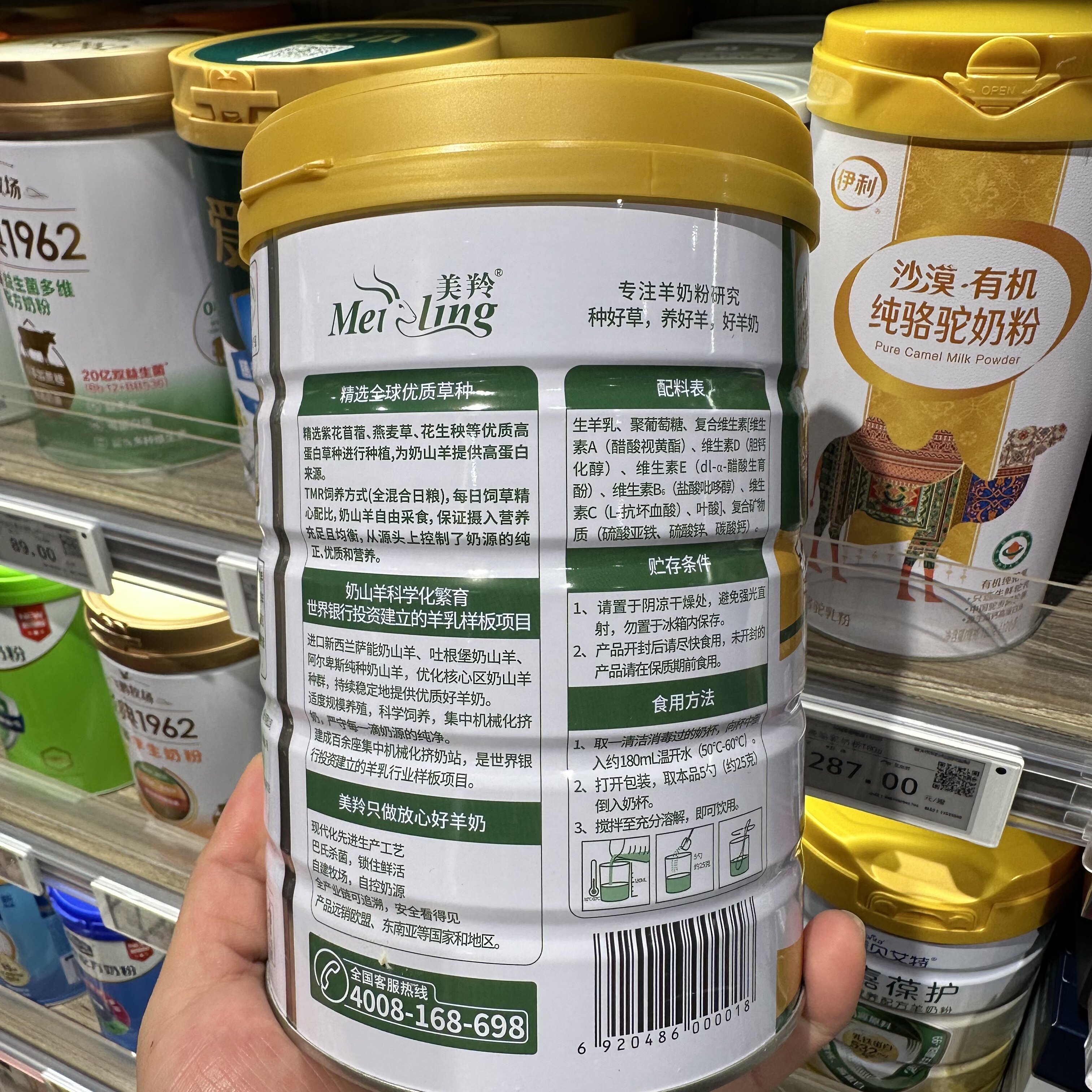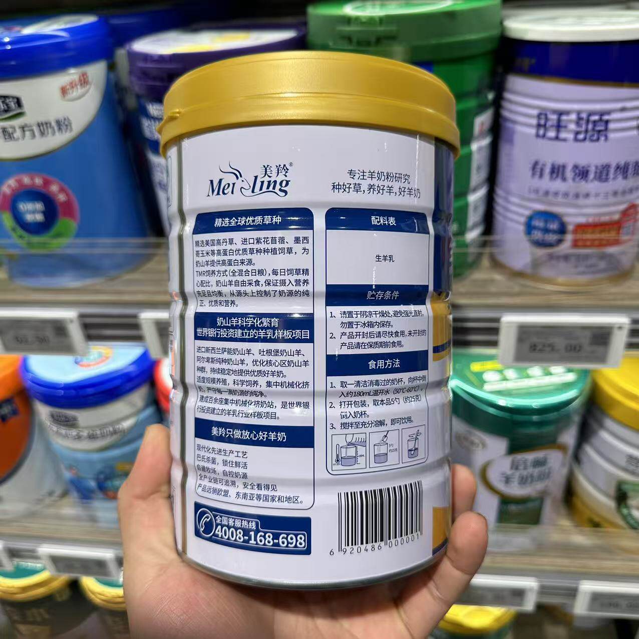 胖东来代购 羊奶粉 美羚全脂纯羊奶粉600g*1罐 胖东来超市代购