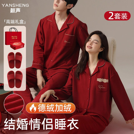 2套德绒红色睡衣结婚新婚情侣套装保暖新人一男一女方陪嫁高级感