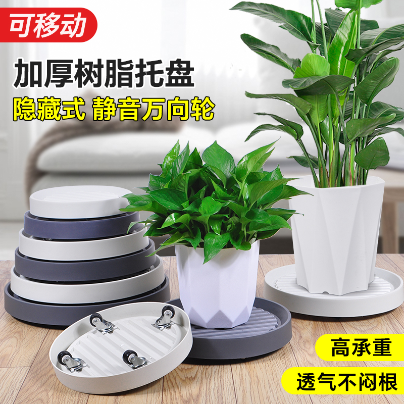 移动花盆托盘带轮隐藏底座滚轮花架底座万向轮接水盘带滑轮神器