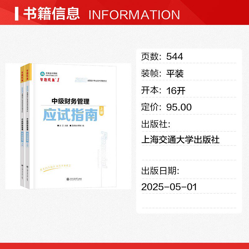 中级财务管理应试指南 2025(全2册) 达江;正保会计网校 编 注册会计师考试经管、励志 新华书店正版图书籍 上海交通大学出版社