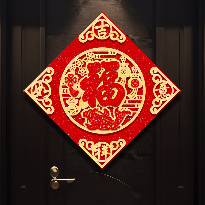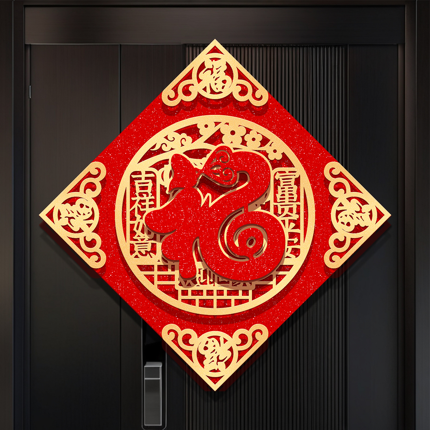 福字门贴2026马年立体绒布自粘入户门春节过年大门新年窗花帖装饰