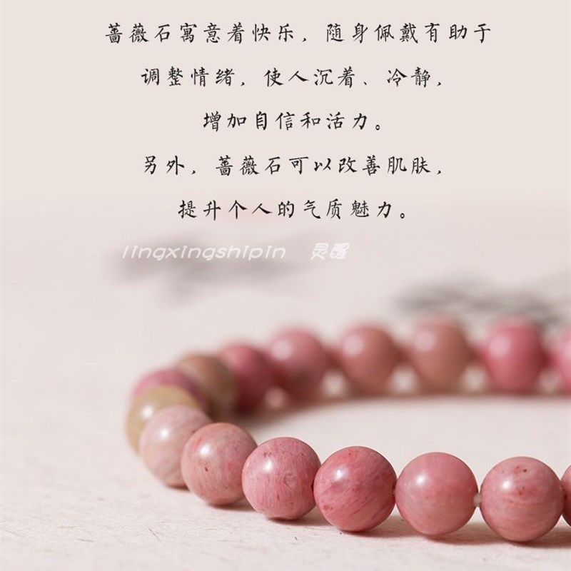 蔷薇辉石天然水晶招桃花手链女夏粉色手串送女生礼物闺蜜红纹石