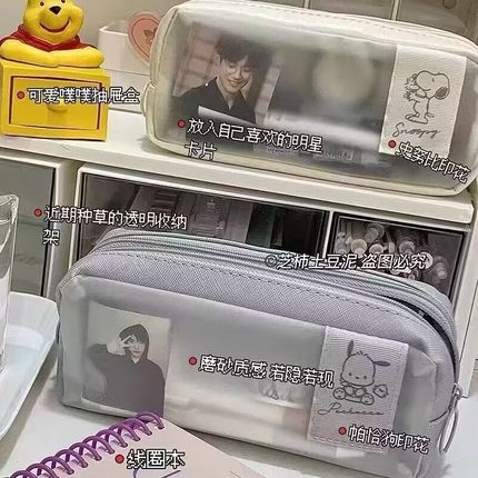 夏季防水pvc双层史努比笔袋简约大容量高颜值小清新学生文具袋