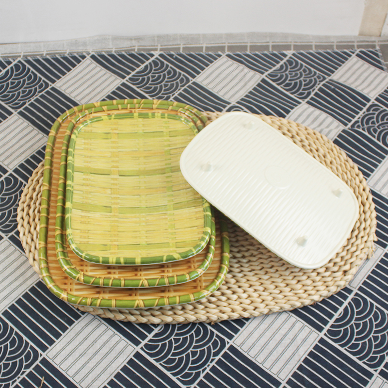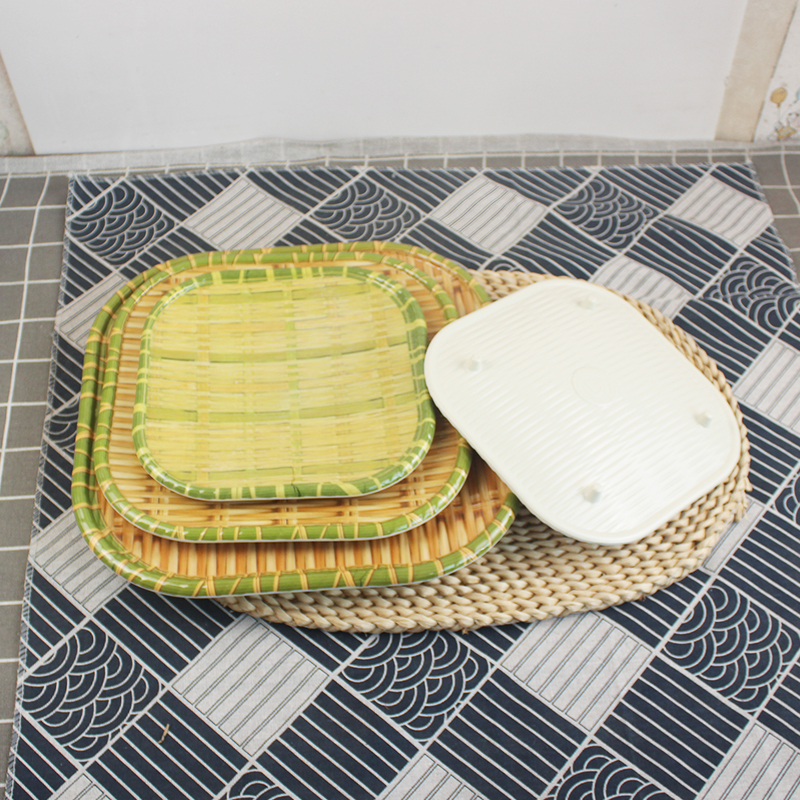 竹编仿瓷农家乐圆盘长方盘菜盘子塑料火锅盘盛菜烧烤盘点心小吃盘