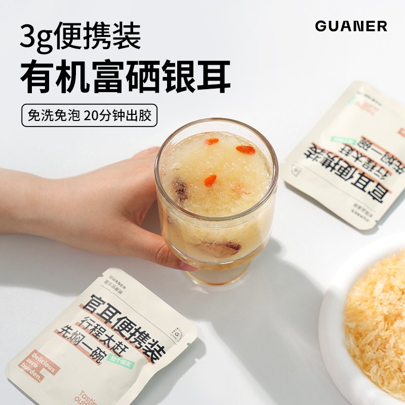 【天猫U先】官耳3g有机富硒银耳羹20分钟速焖干货白木耳冲泡即食