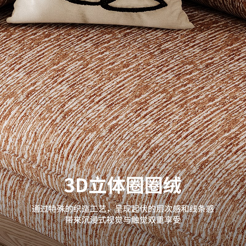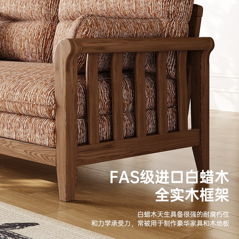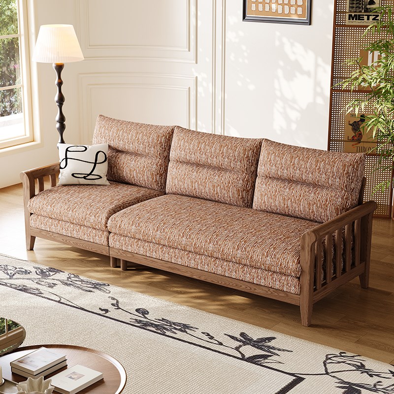新中式实木沙发小户型客厅复古风直排三人可拆洗3D圈圈绒布艺沙发