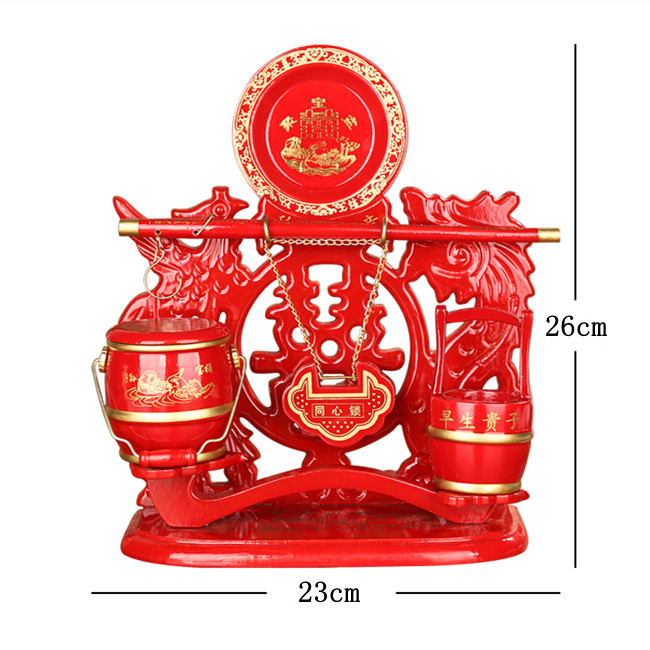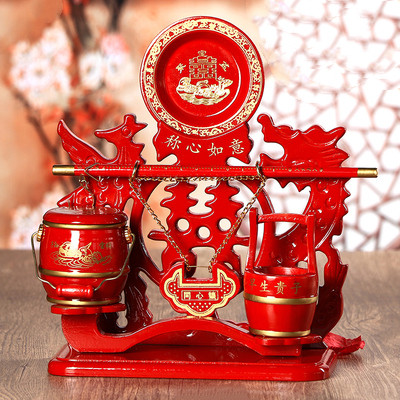 结婚子孙桶三件套同心锁称心如意摆件备婚庆用品大全新娘陪嫁娘家