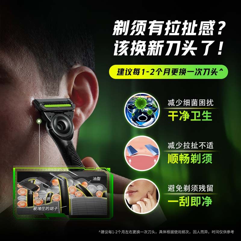 吉列极光刀热感原装刀头剃须刀5层刀片男士手动刮胡刀适配替换头
