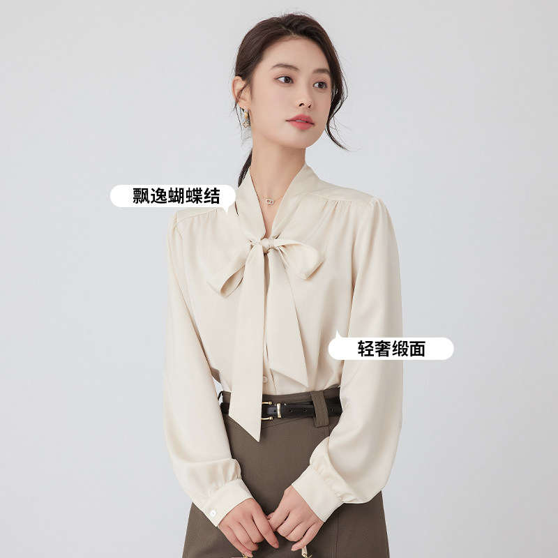 达佳诗香槟色蝴蝶结衬衫女教师面试穿搭正装气质上衣职场通勤衬衣
