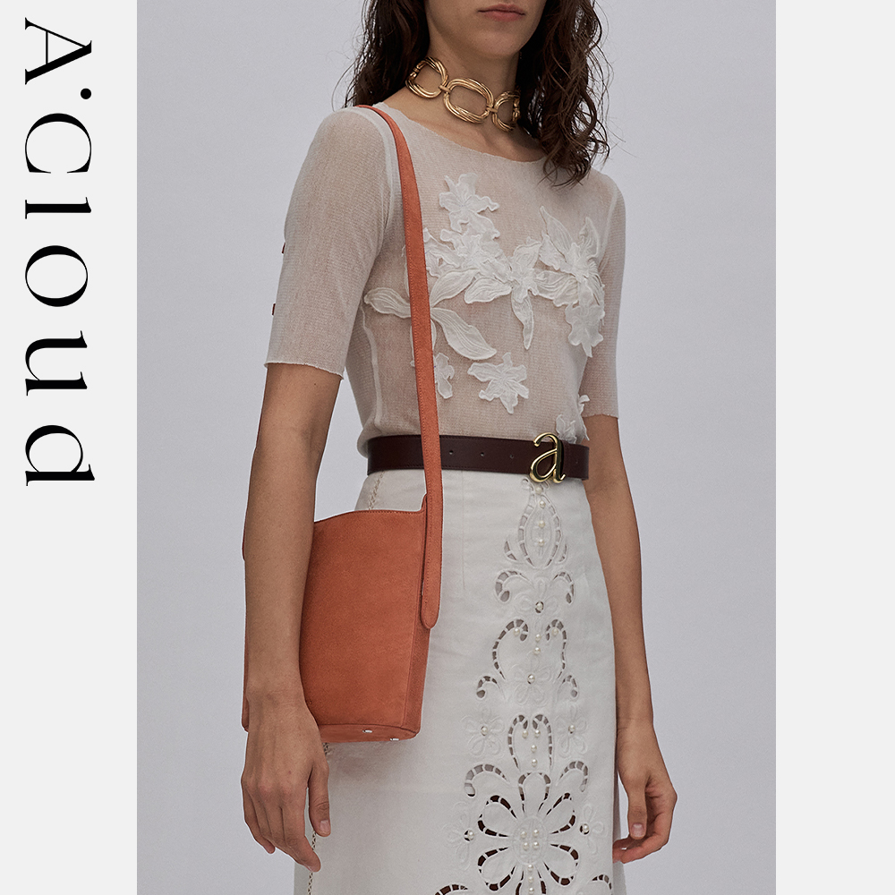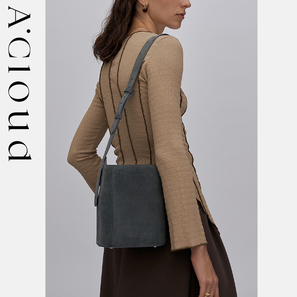 A.Cloud麂皮绒水桶包小号女复古高级感单肩斜挎包菜篮子包
