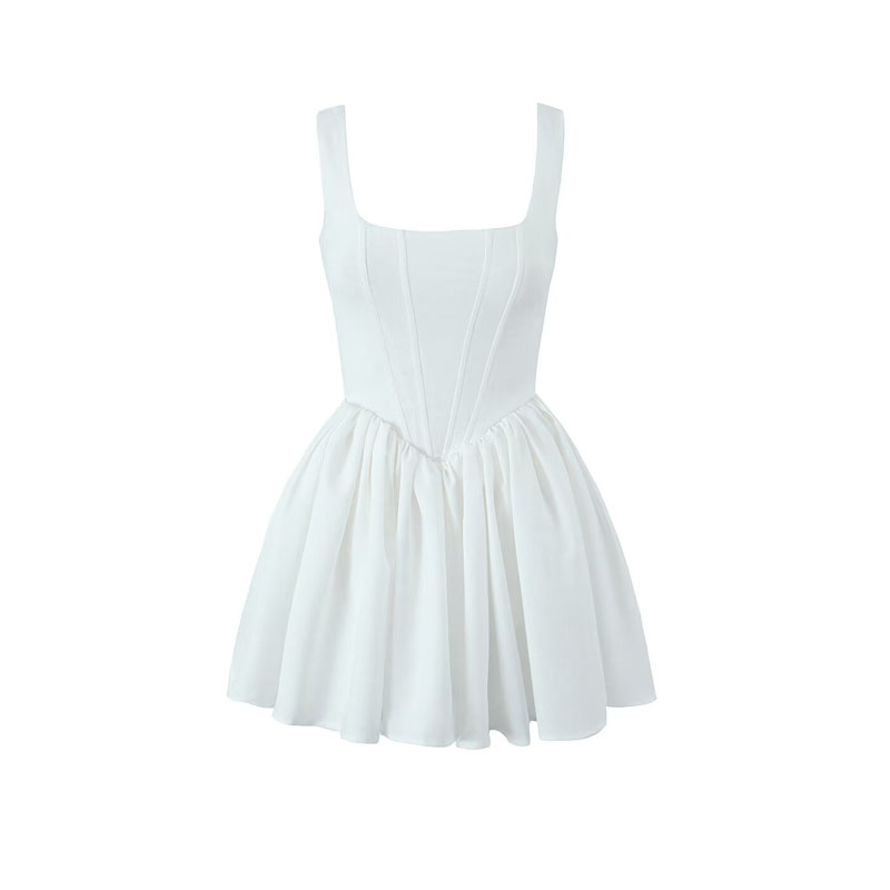性感甜辣时尚女连衣裙无袖吊带露背减龄百搭高腰百褶裙少女短裙