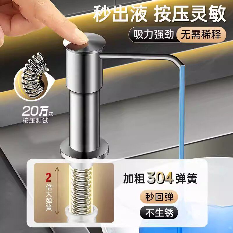 九牧王厨房洗洁精水槽按压器304不锈钢皂液器洗菜盆洗涤剂加长管