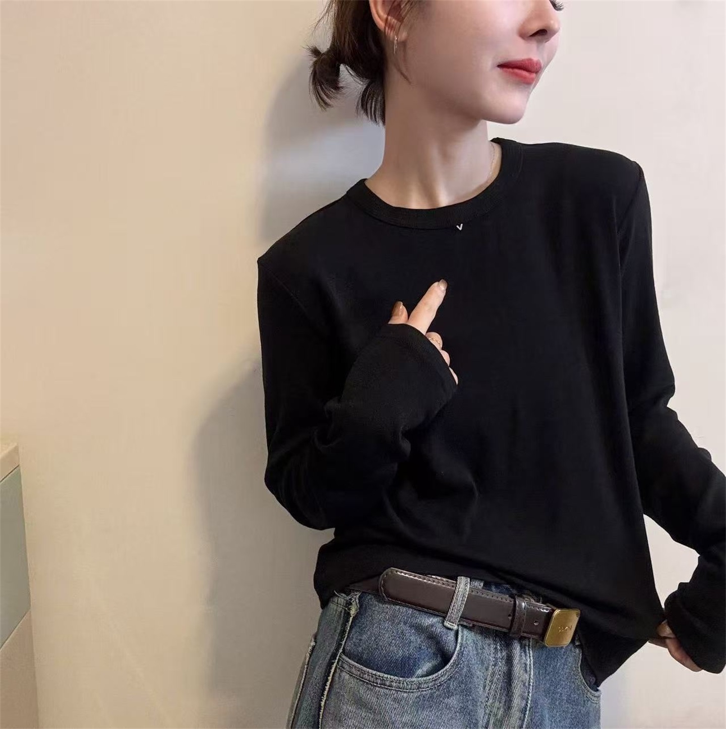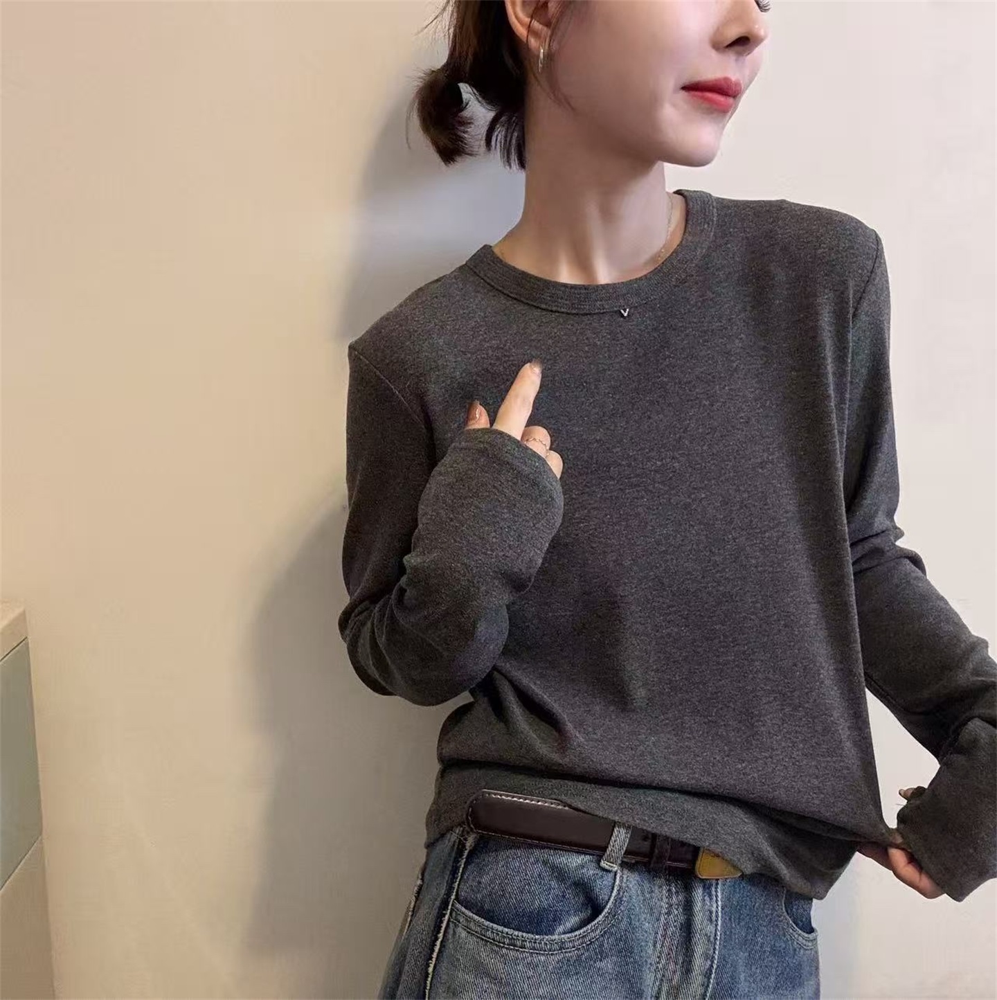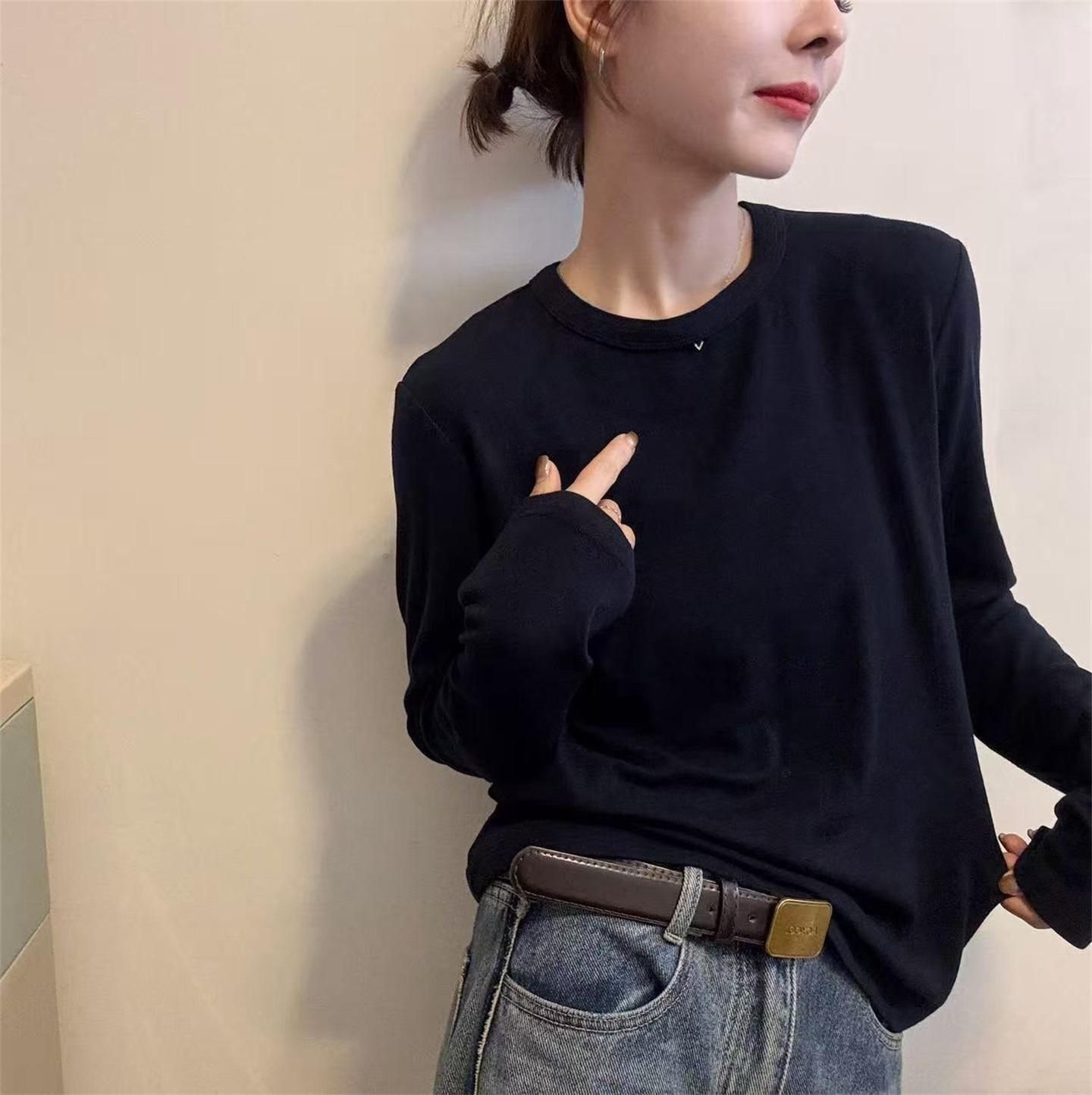 2025秋季新款内搭纯色圆领长袖T恤女宽松百搭休闲打底衫上衣30961