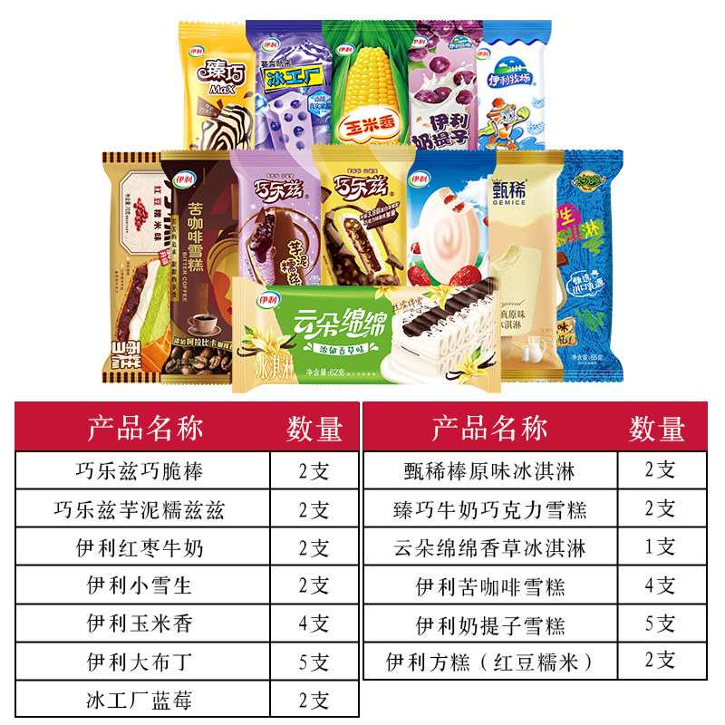 35支伊利巧乐兹甄稀牛乳黑巧冰淇淋芋泥兹兹四个圈奶提子布丁整箱