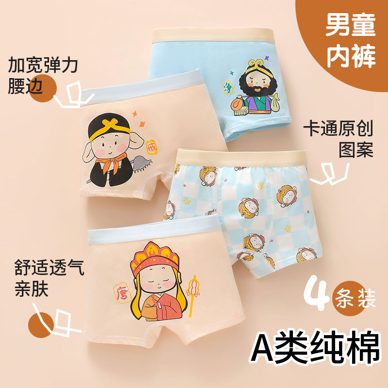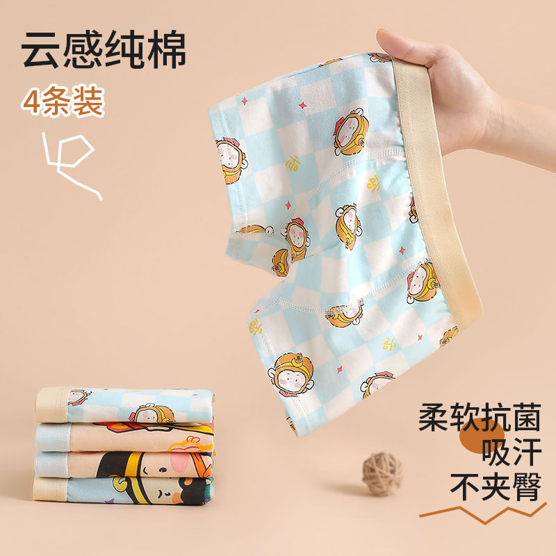 西游记儿童内裤男童纯棉平角短裤不夹pp四角中小大童抗菌A类男孩
