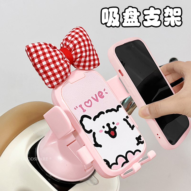 电动车吸盘手机支架防抖可爱卡通