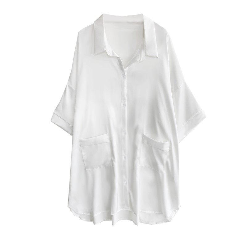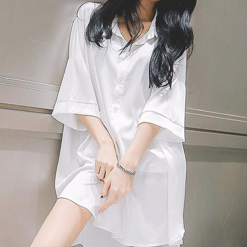 睡裙女夏季雪纺性感甜美薄款男友风白衬衫中长款春秋宽松私房睡衣