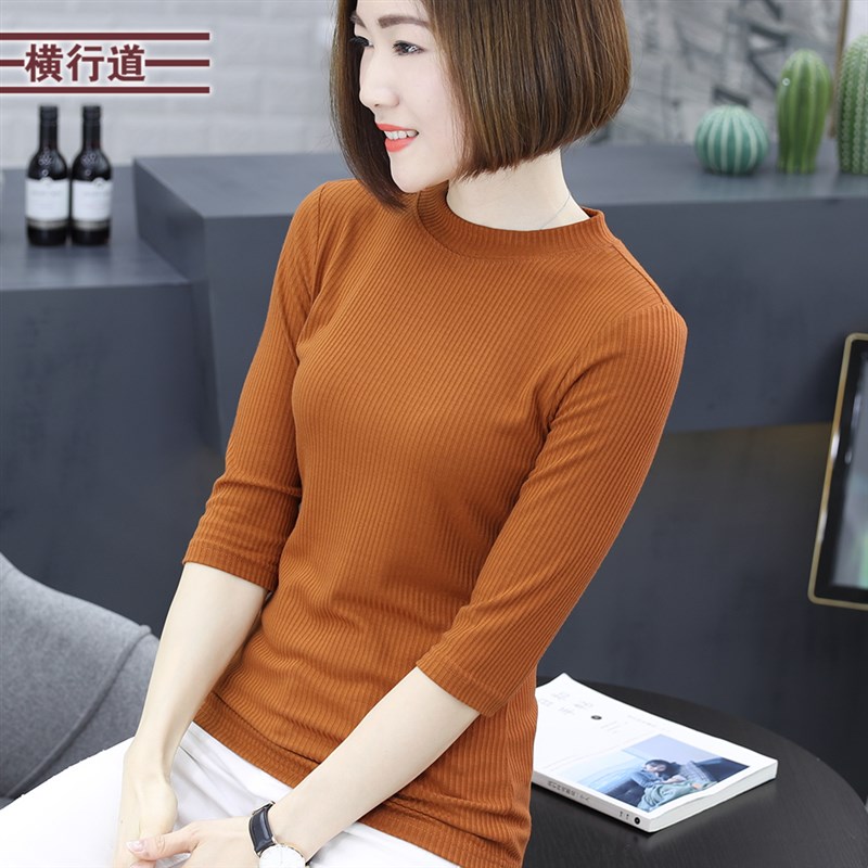 纯色秋装中袖七分袖半高领女士t恤打底衫大码女装修身黑色上衣服