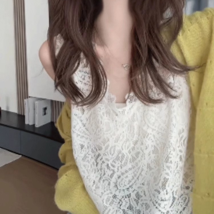白色无袖背心蕾丝打底衫女2025新