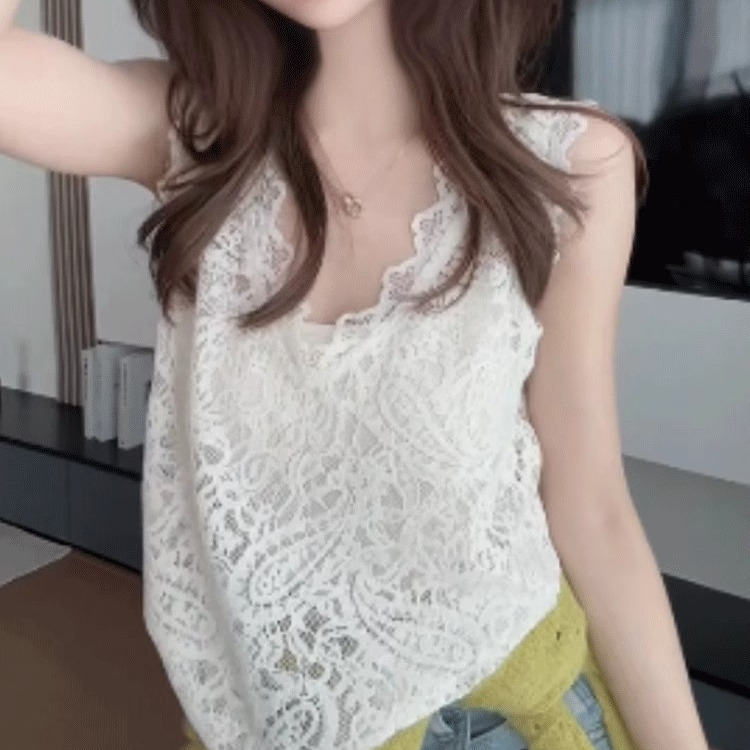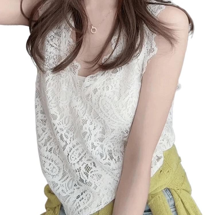白色无袖背心蕾丝打底衫女2025新款爆款夏季欧货内搭可外穿上衣女