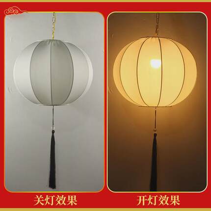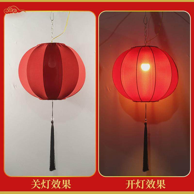 圆形灯笼2024年新年国潮风广告春节景区婚礼装饰新中式布艺红吊灯