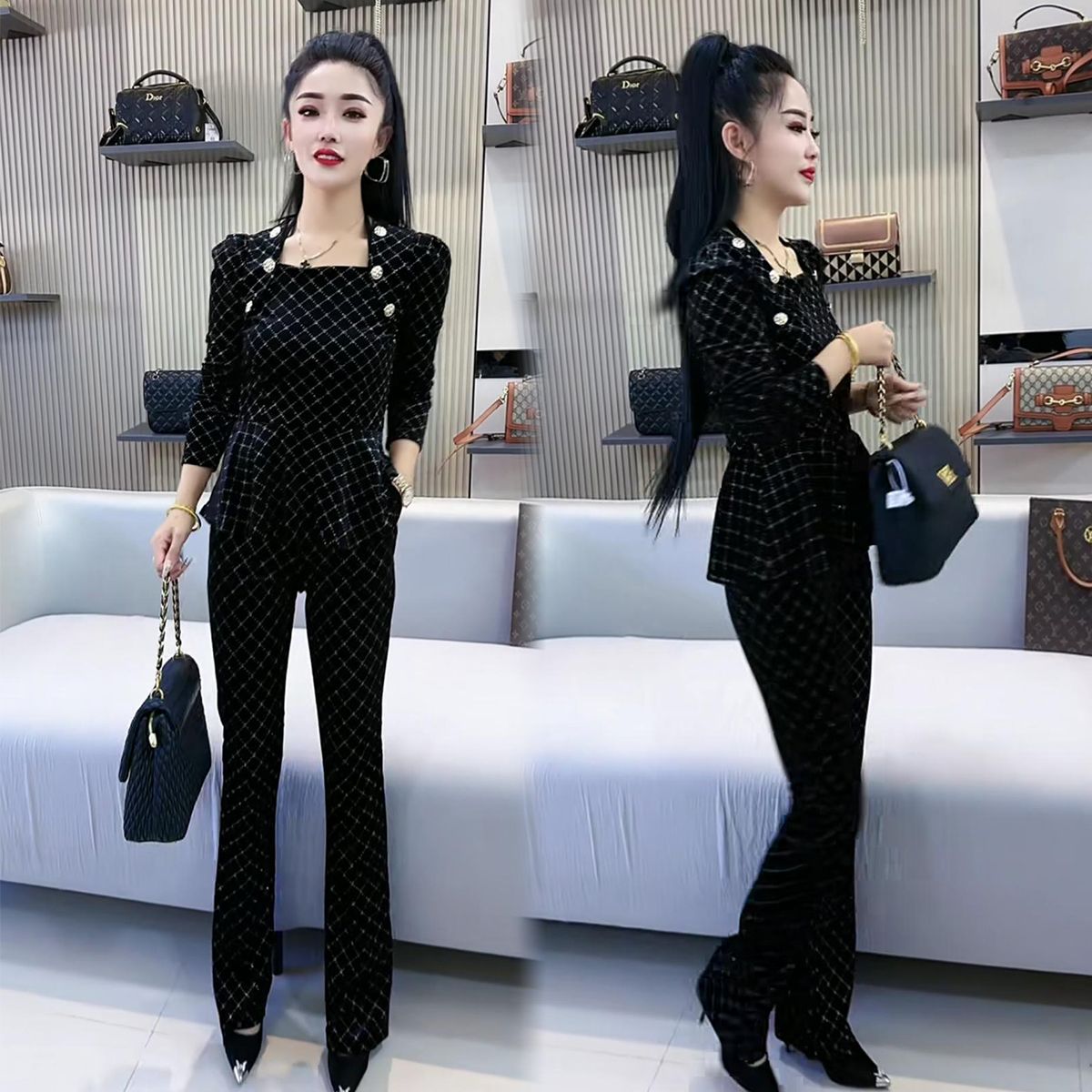 时尚小香风套装女2025春季新款气质遮肚显瘦方口领上衣裤子两件套