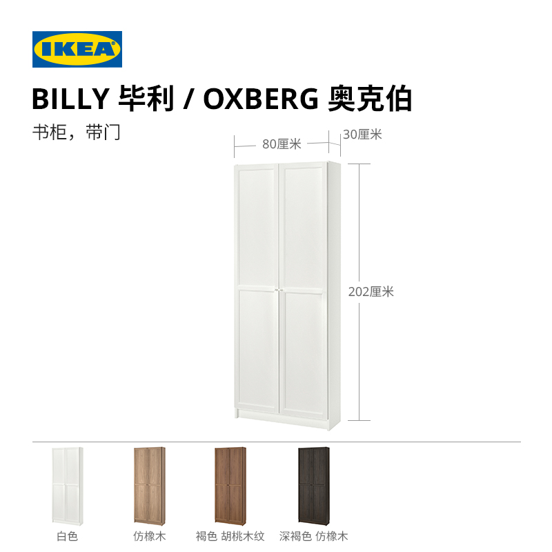 IKEA宜家BILLY毕利双门立柜防尘落地书柜带门客厅书房陈列置物柜