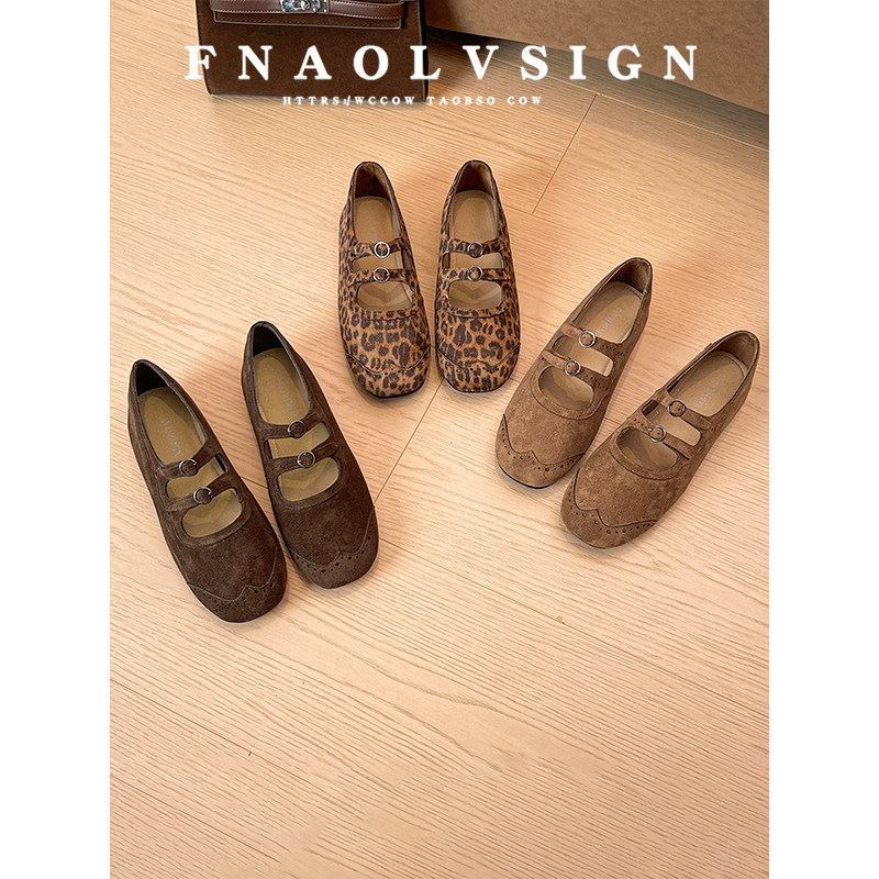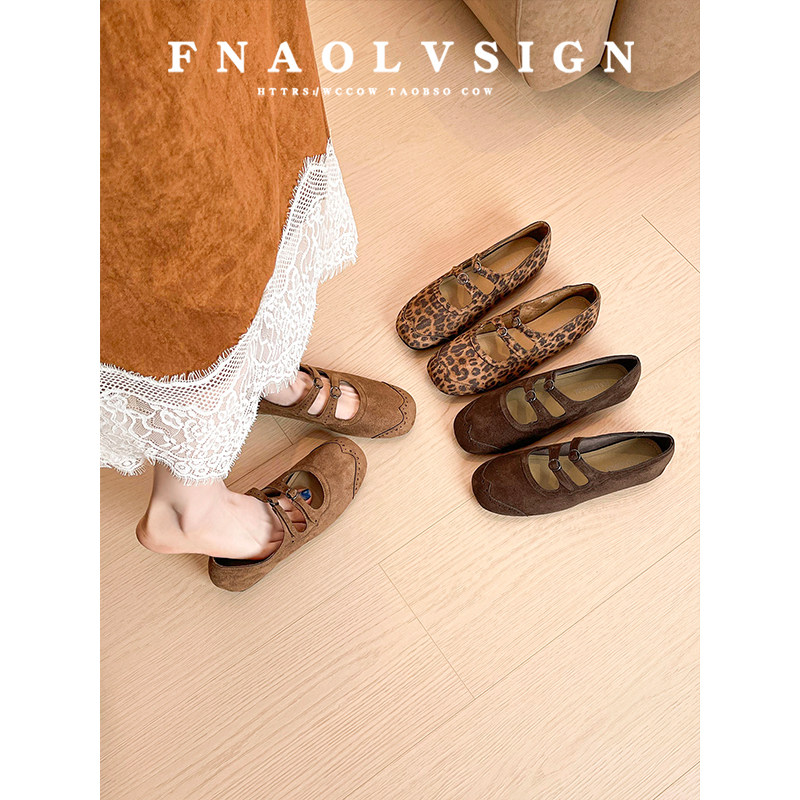 羊皮版~法式复古豹纹玛丽珍鞋2025秋季新款芭蕾舞鞋平底浅口单鞋