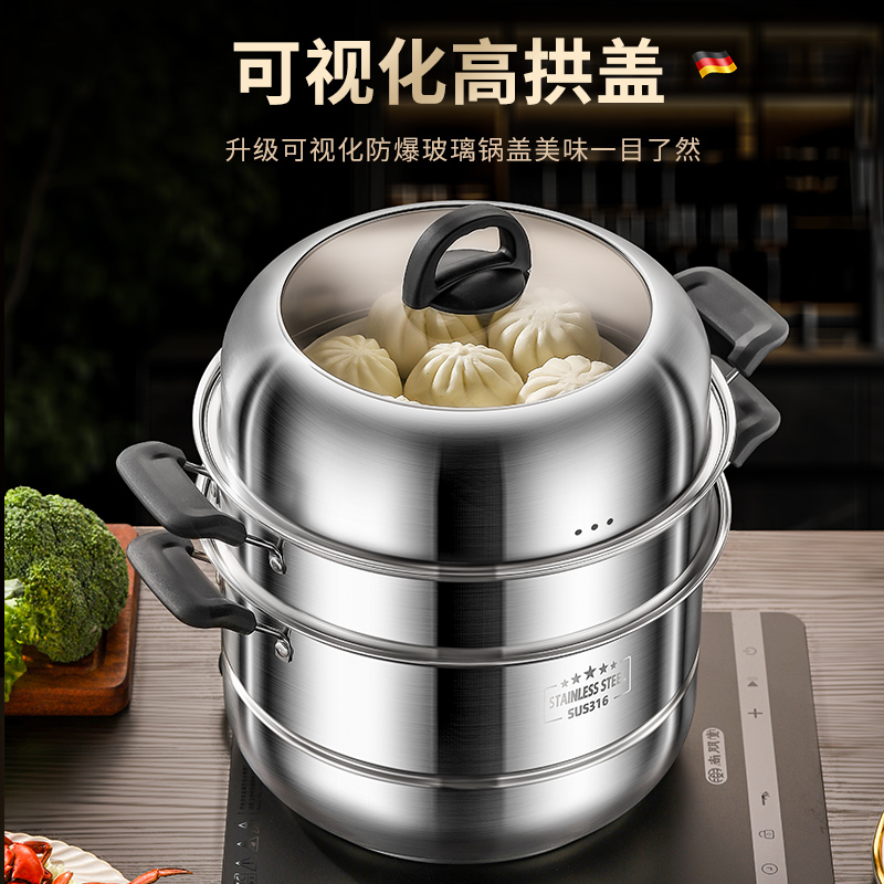 2025新款加厚不锈钢蒸锅蒸笼多层家用蒸煮炖大容量电磁炉煤气专用