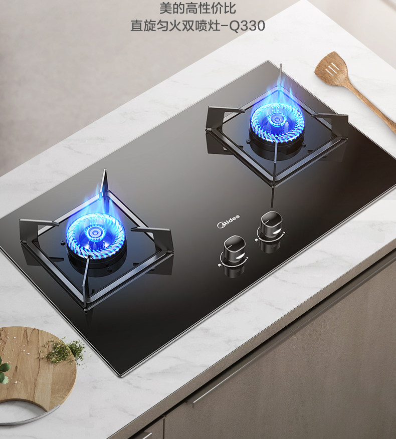 美的Q330燃气灶家用厨房嵌入式5.0kw大火力天然气煤气双灶台