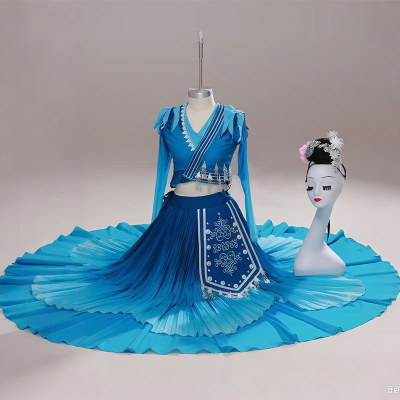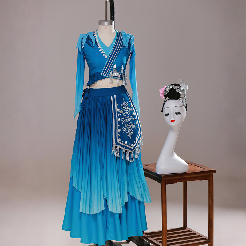 花儿少数民族苗族舞蹈演出服出租 桃李杯艺考表演360度大摆裙租赁