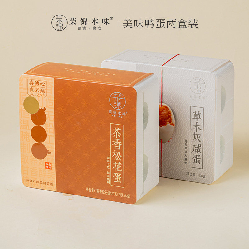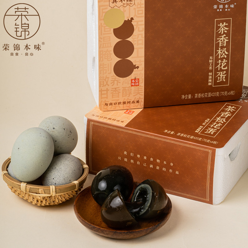 荣锦本味大咸鸭蛋皮蛋松花蛋变蛋茶香无铅工艺70g*6*2盒礼盒装