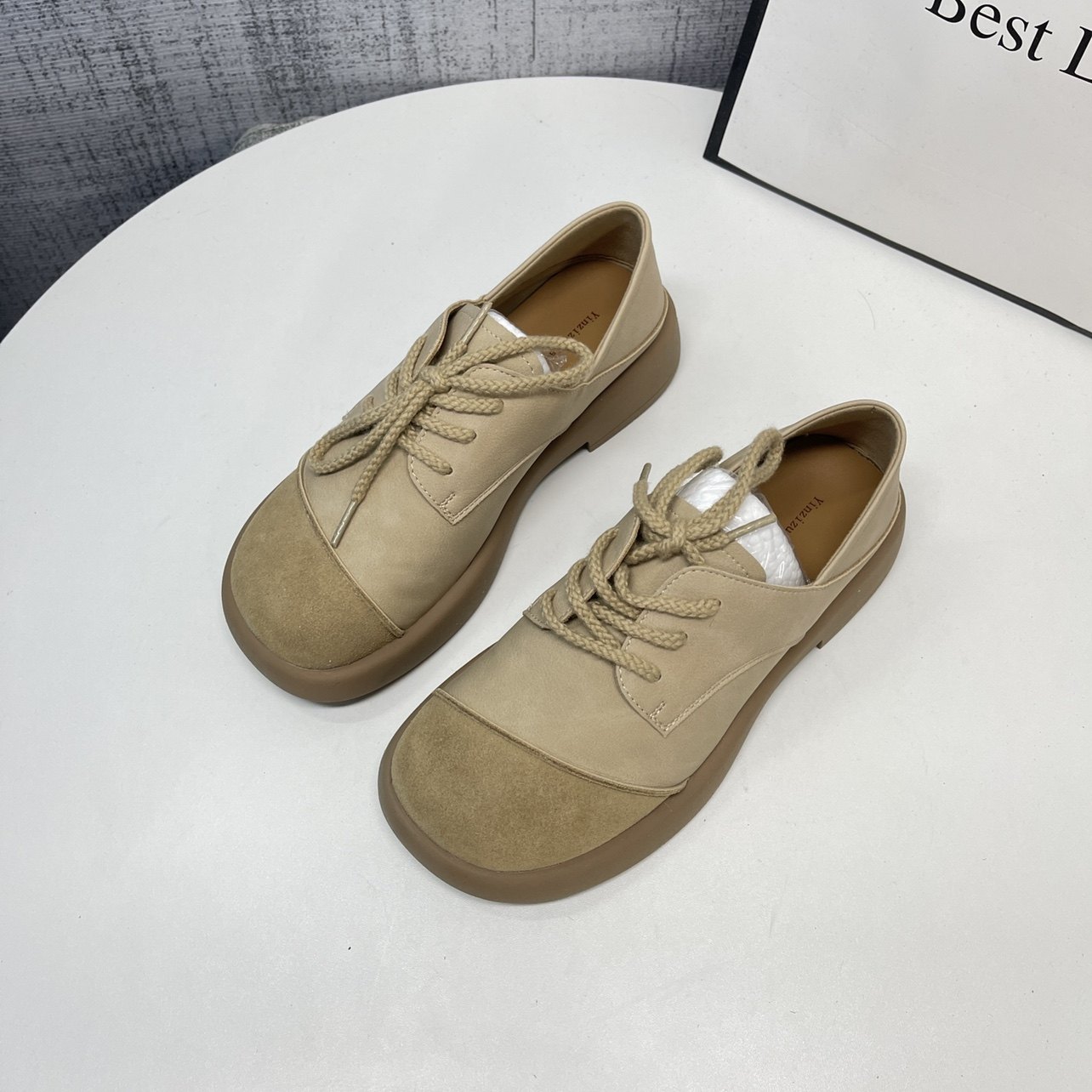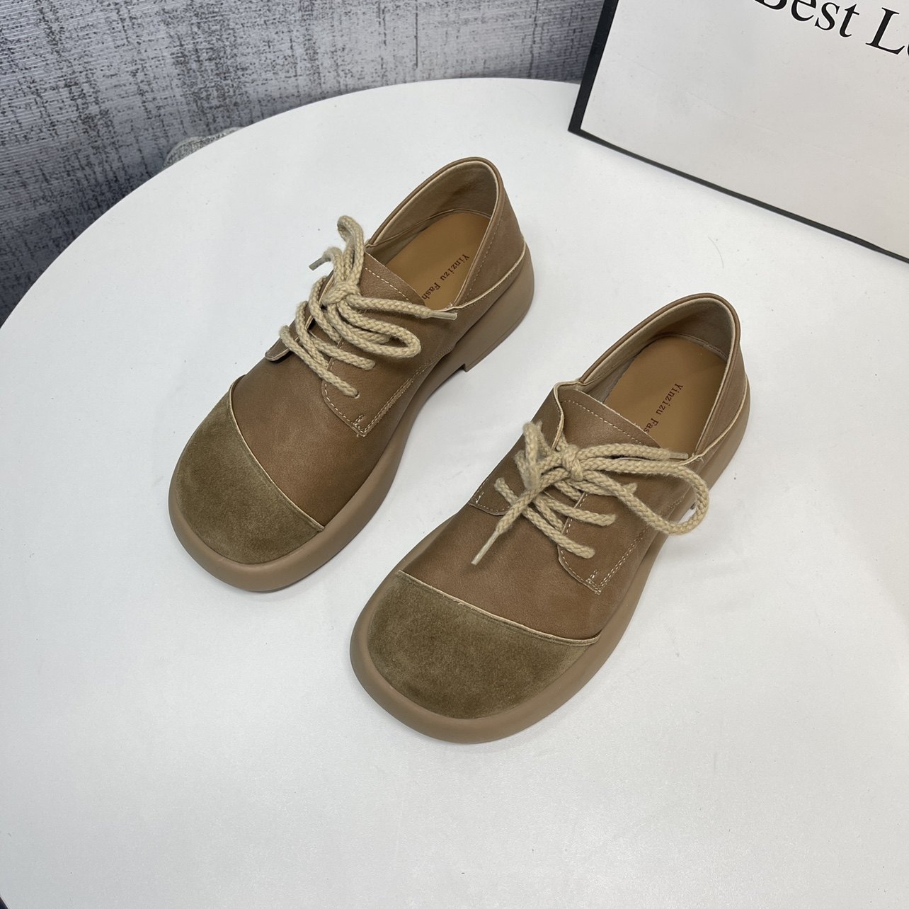 平底百搭英伦风小皮鞋圆头系带