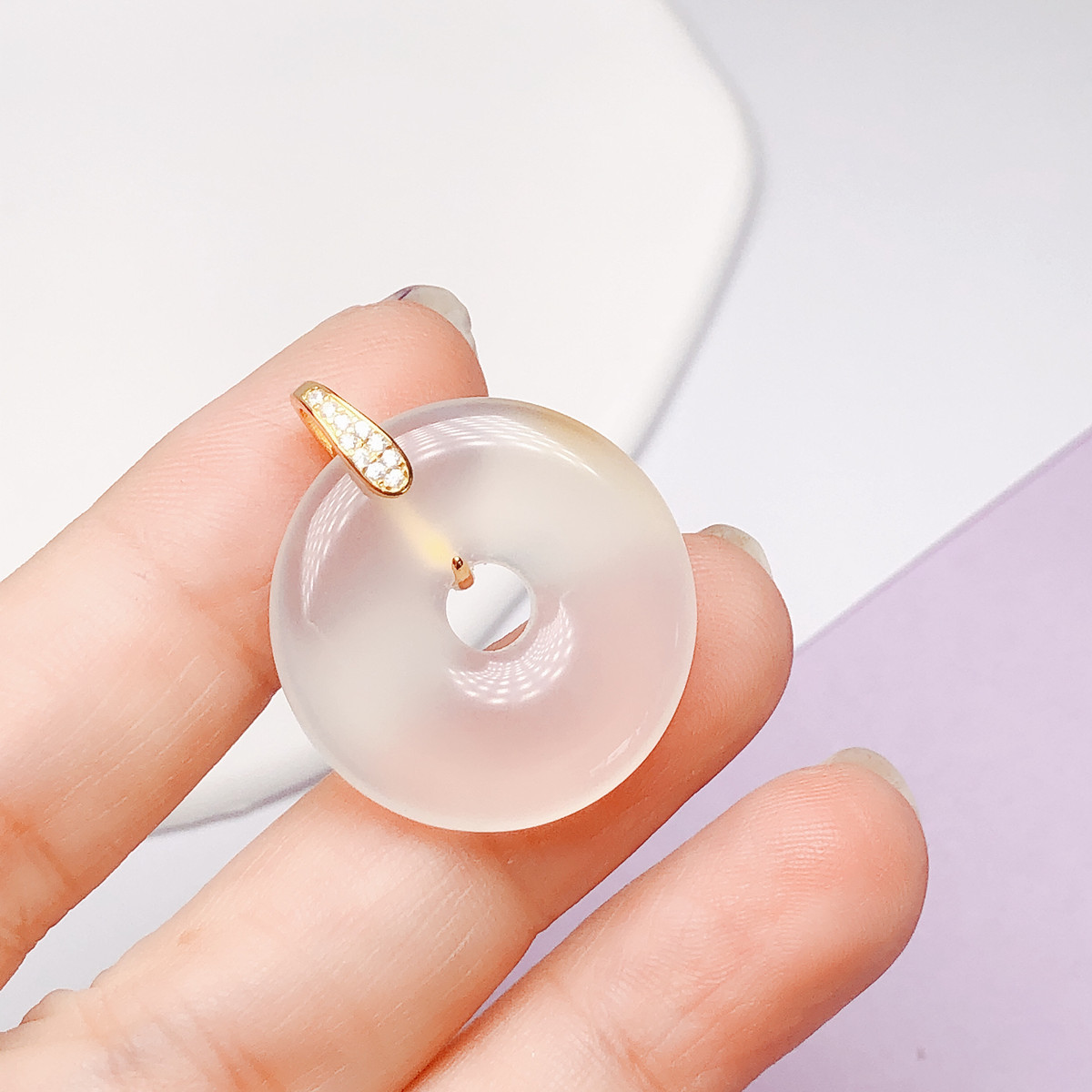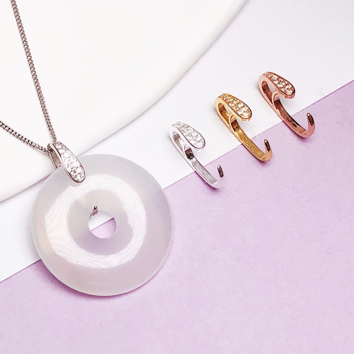 S925纯银镀18K金平安扣 简约扣甜甜圈吊坠夹扣头翡翠项链夹扣包邮