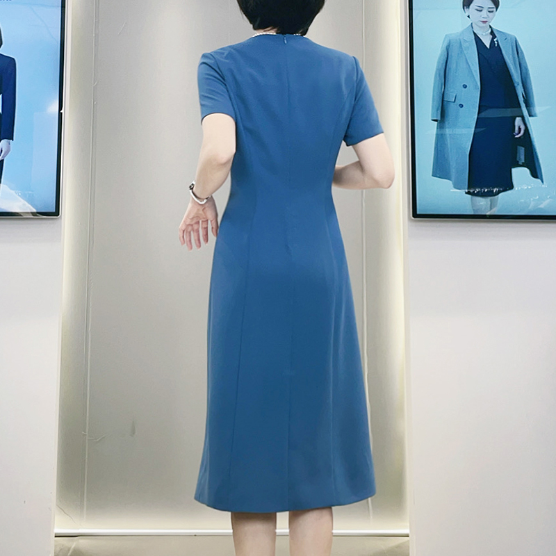 圆领连衣裙女夏季短袖中长款气质职业装小众设计高端修身显瘦裙子