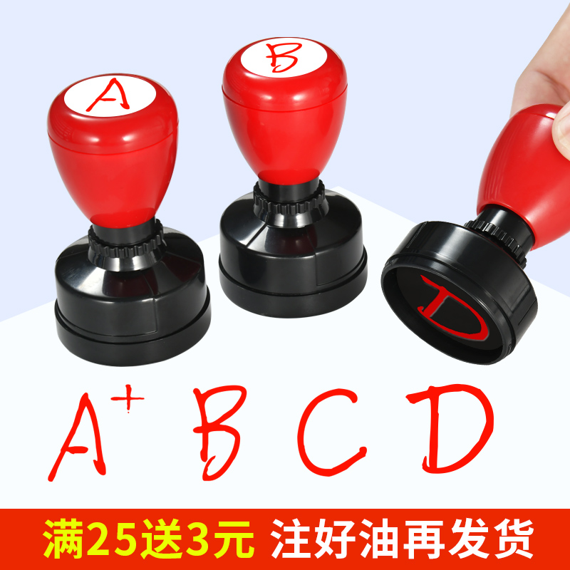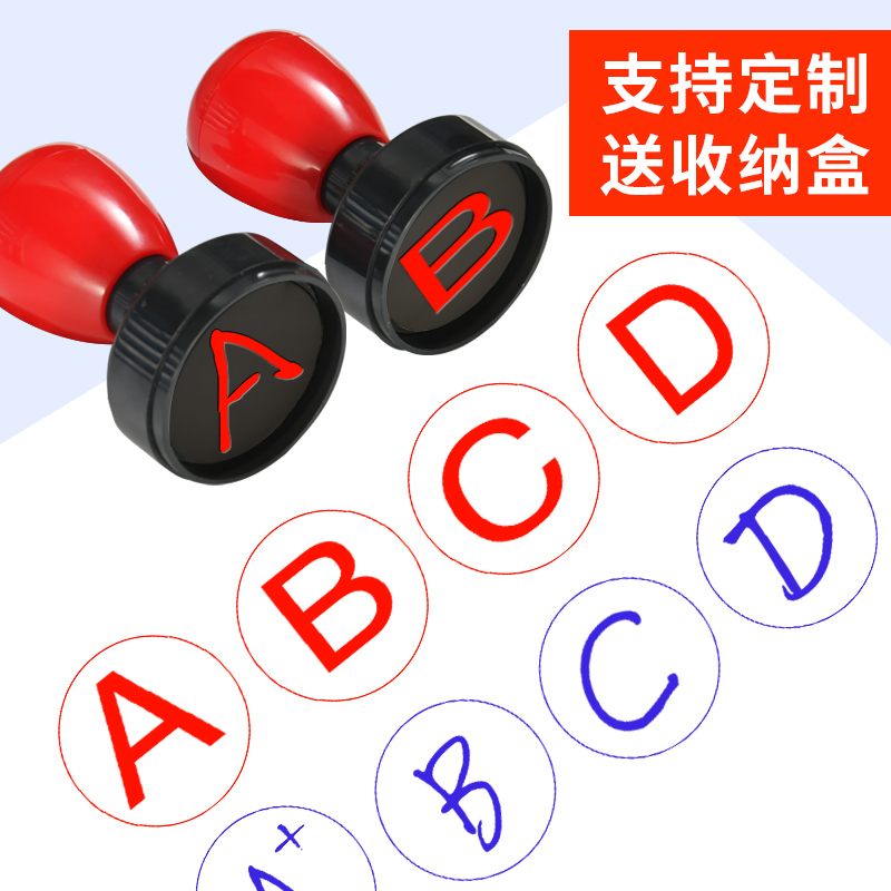 教师印章批改作业用手写体AA-A+BCD盖章幼儿园老师教学表扬奖励儿童小学生评分评语鼓励盖章红柄按压式章印