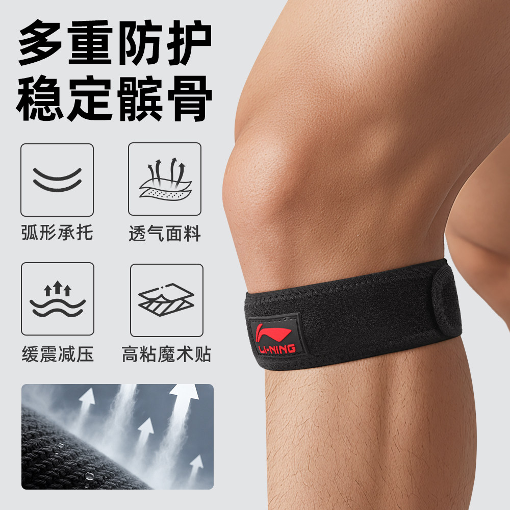 李宁髌骨带护膝专业级关节保护套篮羽毛球运动男膝盖跑步专用护具