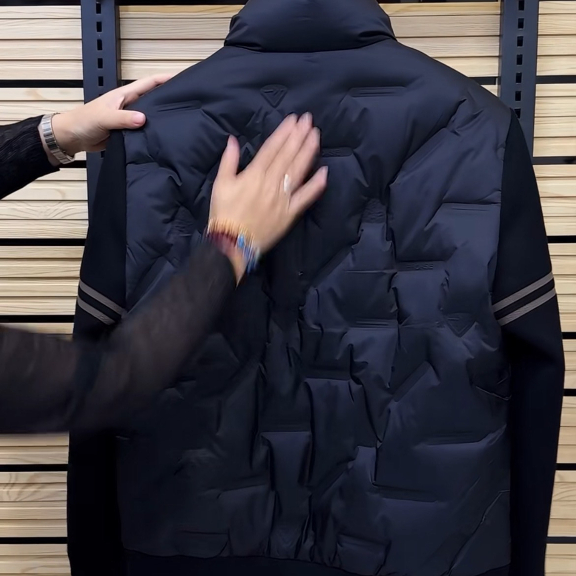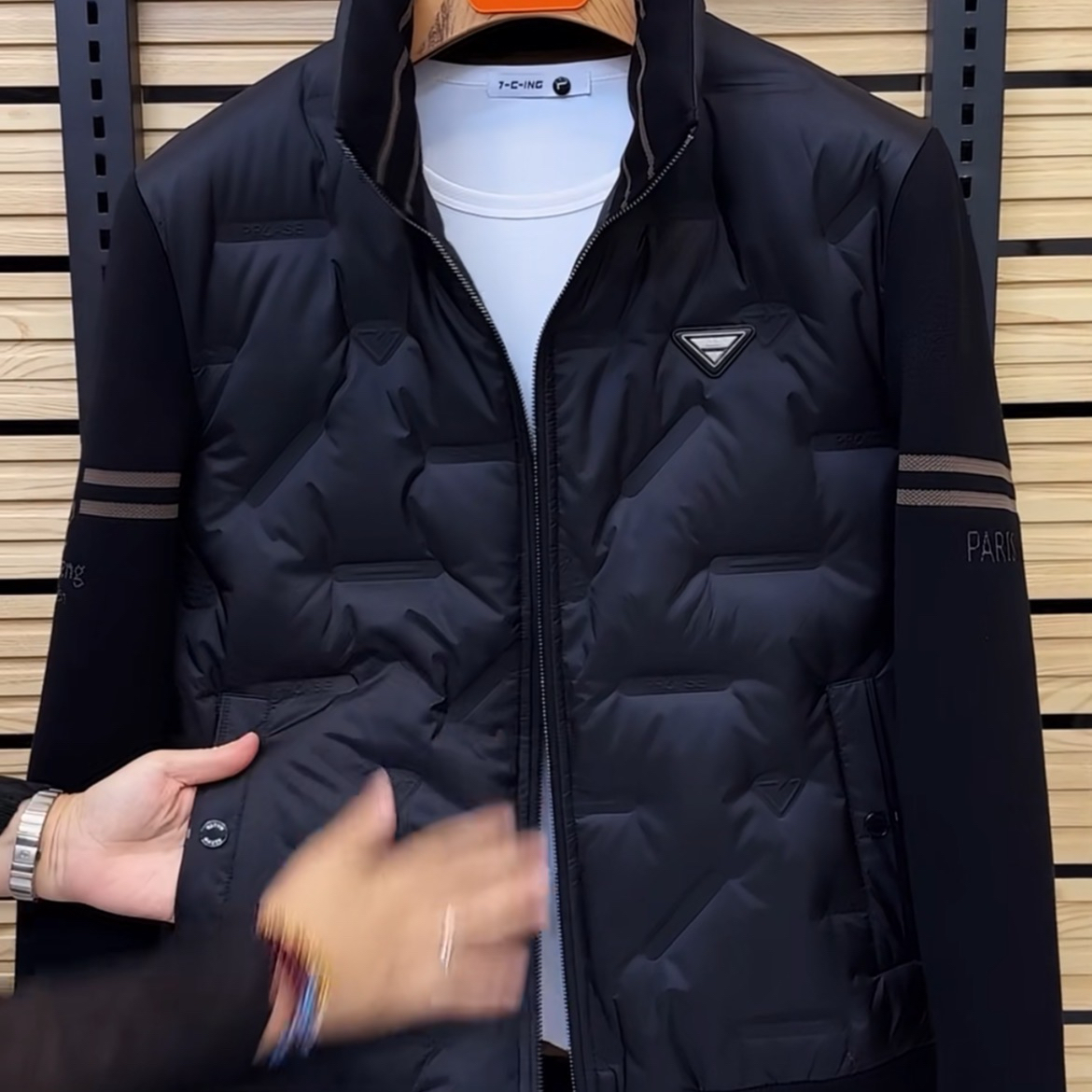 2025冬季新款男士欧货立拼接领羽绒服时尚百搭修身鸭绒保暖外套男