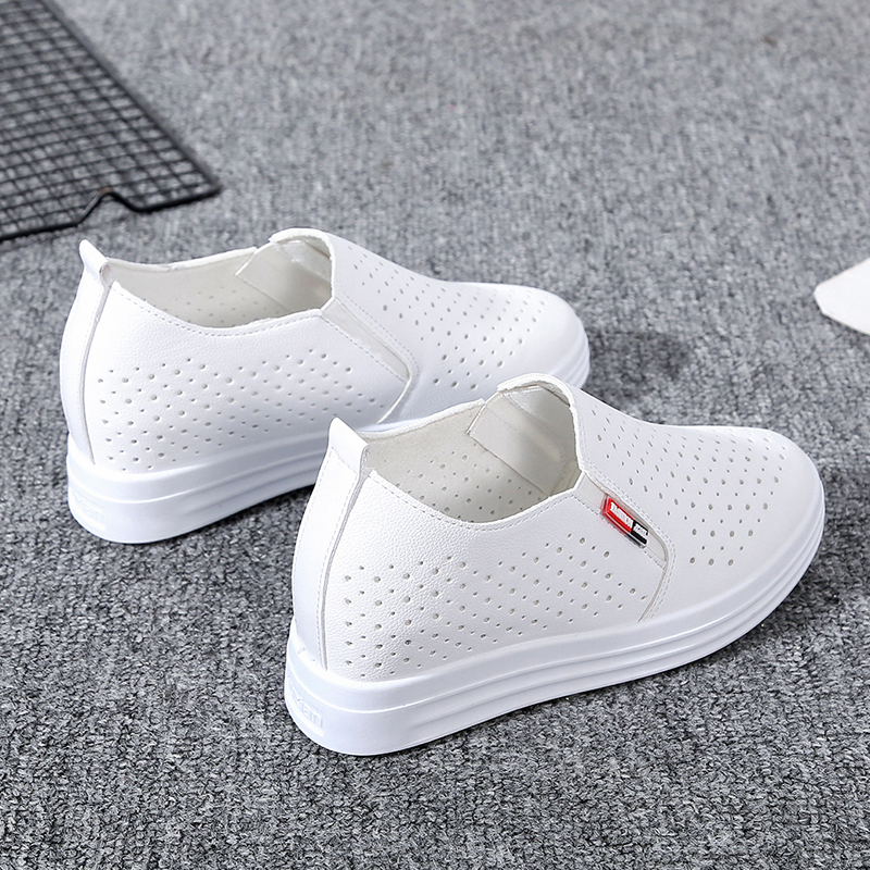 春夏新款小白鞋女内增高厚底百搭一脚蹬懒人坡跟单鞋休闲女运动鞋