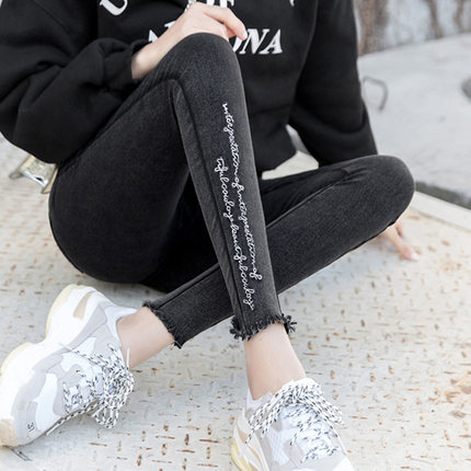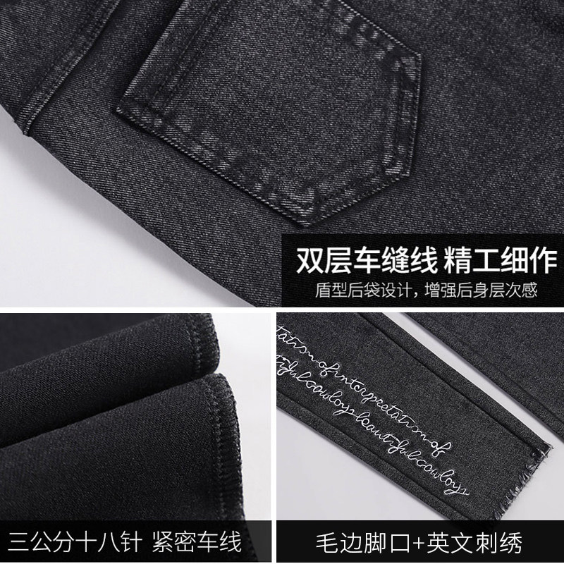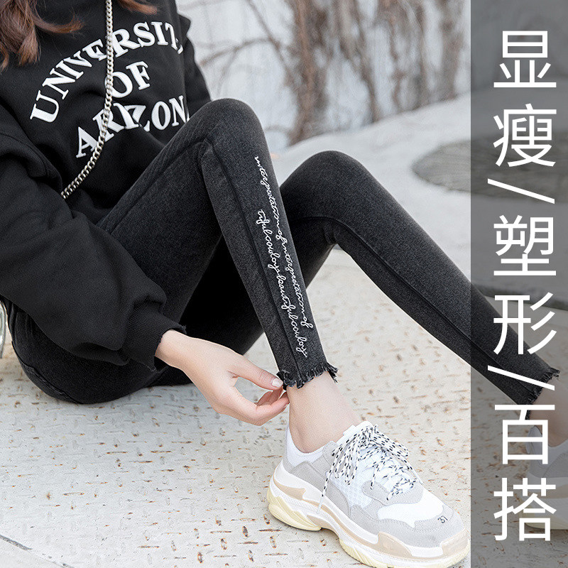 薄绒牛仔打底裤女外穿春秋薄款加绒九分2023新款高腰显瘦小脚铅笔